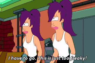 I have to go. This is just too freaky! Please don't get upset, Leela. She's nothing like you. I have to go. This is just too freaky.