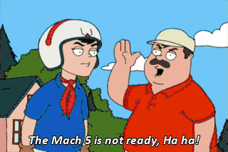 The Mach 5 is not ready, Ha ha! But, Pops, I must be in this race, Ha ha! Very well. But I am not really your father, Ha ha! ah! Ok girls, get ready...