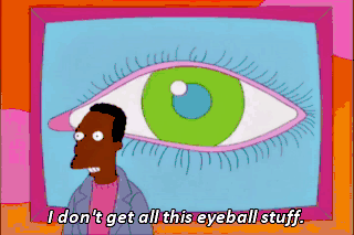 I don't get all this eyeball stuff. What are they supposed to represent? Eyeballs? It's "po-mo." Postmodern. Yeah, all right. Weird for the sake of weird.