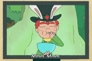 Mmm. Mmm. Last bite. Mmm. Oh, now they're all resting comfortably in my stomach. Ooh, am i feeling good, Noi Get away from me! Get away from me! There's no more strawberry snibbles -- no! Jesus Christ!