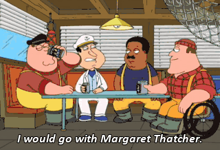 I would go with Margaret Thatcher. Margaret ThatchER? Why the hell Margaret Thatcher? Oh, So nobody here thinks power is sexy? Not one of you finds power sexy? How about you, Peter?
