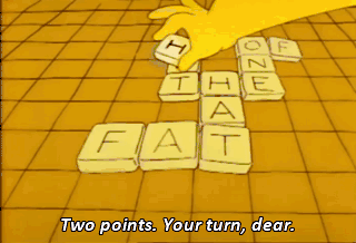 Two points. Your turn, dear. Hmm. How could anyone make a word out of these lousy letters ? Oh, wait. Here's a good one. "Do."