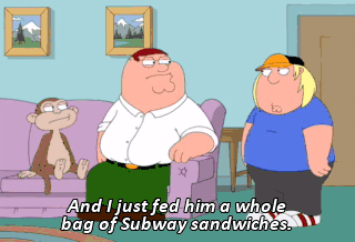 In a couple hours, we are gonna sit around and throw his soft-bread stool at each other.