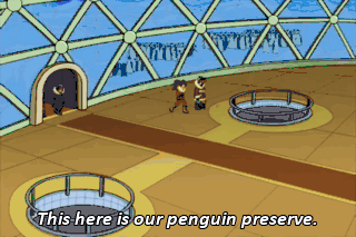 This here is our penguin preserve. Aw, they're so cute. They're like if puppies and kittens could have babies.