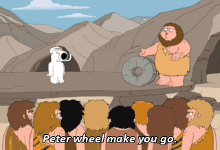 Peter wheel make you go. Maybe Joe want try wheel on chair. For last time, Joe no want. (SCREAMING)