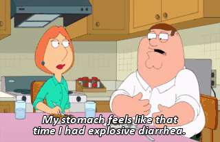 My stomach feels like that time I had explosive diarrhea. (FARTING) PETER: Brown house.