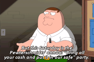 But this Saturday is the Pewterschmidts' annual "Bring all your cash and put it in our safe" party.