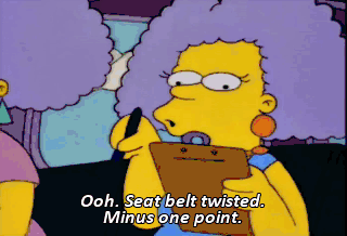 Ooh. Seat belt twisted. Minus one point.