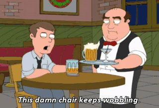 This damn chair keeps wobbling. I think one of the legs is short. Lance, I told you to fix that chair!
