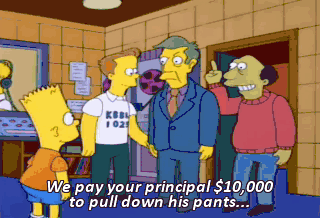 We pay your principal $10,000 to pull down his pants... and keep 'em down for the rest of the school year. I'll do it, Bart. Um... no.