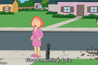 Good morning, Lois. (GUNSHOT) Peter, for God's sake! I am so sorry, Mort. No problem, Lois. That's just how people say hello to me. (GUNSHOT) Hey, Joe! JOE: Hey, Mort!