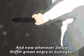 And now whenever Stewie Griffin grows angry or outraged, a startling metamorphosis occurs. I hurt myself changing this tire!