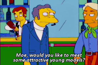 Moe, would you like to meet some attractive young models? Models? Oh, boy. Okay, look cool. Wait a minute. You're all from Russia? Da!
