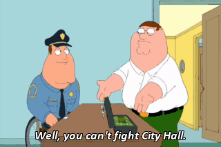 Well, you can't fight City Hall. Oh, we'll see about that! City Hall knows karate.