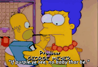"If purple ye see, no baby thar be."