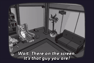 Wait. There on the screen. It's that guy you are! I'm sleepwalkin'. Dear Lord, we've got robots on the ceiling!