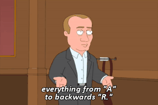 everything from "A" to backwards "R." Wow! Thank you so much for your help, Mr. Putin. Would you like to see Russian cutaway gag?