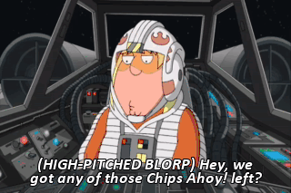 (HIGH-PITCHED BLORP) Hey, we got any of those Chips Ahoy! left? No, those are all gone. (GROANS) (WRAPPER CRINKLING) (WRAPPER CRINKLING)