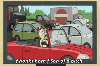 f honks horn f Son of a bitch.