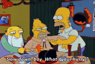 Slow down, boy. What's your hurry ?