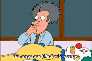 His lungs are filled with candy!