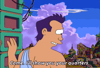 Come. I'll show you your quarters. Ow. Ow. Ow.