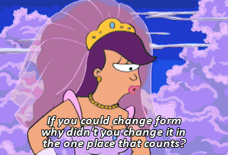 If you could change form why didn't you change it in the one place that counts? Thanks for saving me from that creep, Fry. Hey, that's what I do.