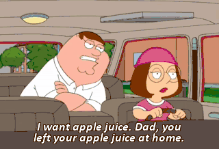 I want apple juice. Dad, you left your apple juice at home.