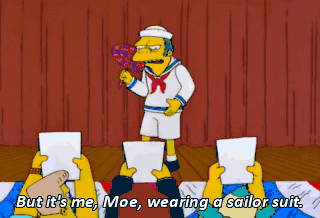 But it's me, Moe, wearing a sailor suit. Moe with a lolly. It's so out of character. Ain't that worth nothin'? Come on. Next. All right, judges, who is our winner?