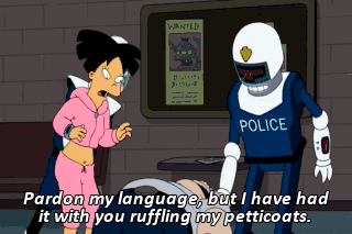 Pardon my language, but I have had it with you ruffling my petticoats. You and I are through! (GASPS)