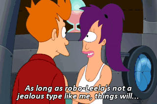 As long as robo-Leela's not a jealous type like me, things will... I'll kill you, you slut-clops!