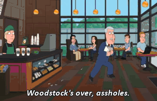 Woodstock's over, assholes. Wow. You certainly look a lot better than that walking corpse I saw last week.