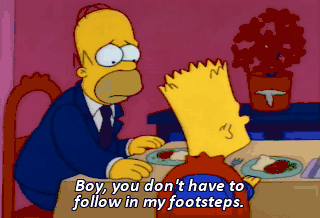 Boy, you don't have to follow in my footsteps. Don't worry. I don't even like using the bathroom after you. Why, you little..!