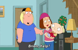 Brian, help! Stewie, what do I do? He's gorgeous, isn't he? I want to be the baby!