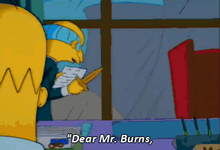 "Dear Mr. Burns, "I'm so glad you enjoyed my son's blood, and your card was just great." Why, Simpson, you've made my day. You're a true gentleman. Yeah, well, I'll be on-- Hello, there's more.