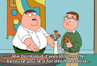 The bank said it wouldn't matter because you're a fat deadbeat loser. Fat deadbeat loser?