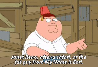 Janet Reno, after a safari, or the fat guy from My Name is Earl.