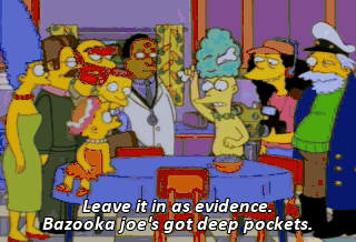 Leave it in as evidence. Bazooka joe's got deep pockets. Perhaps I can help. My papa is foreman of the DÜsseldorf Gum Works. Some folk'll never eat a skunk but then again Some folk'll