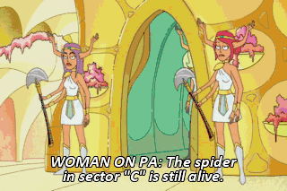 WOMAN ON PA: The spider in sector "C" is still alive.