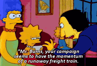 "Mr. Burns, your campaign seems to have the momentum of a runaway freight train.