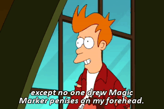 except no one drew Magic Marker penises on my forehead.