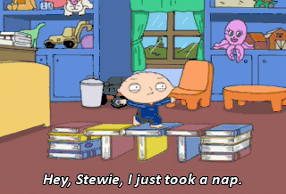 Hey, Stewie, I just took a nap. You want an eye booger? (SCREAMING) Oh, damn you, Chris! Look what you've done! I'm training for the Olympics, and I need absolute concentration. Look at him. Look how fat he is.