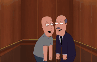 (ELEVATOR BELL DINGS) Aw, did you guys just do the thing?