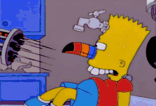 Hmm? What happened? You didn't do anything. Oh, didn't I? Nothing dissolves glue better than human sweat. I knew Bart would panic and start perspiring... at the sight of this button applicator.