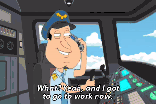 What? Yeah, and I got to go to work now. So I hope he's not, like, hungry or nothing. This is your captain speaking. We've discovered a shoe bomb on board. We're gonna have to return to the terminal.