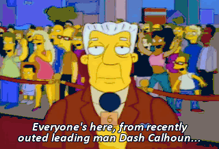 Everyone's here, from recently outed leading man Dash Calhoun... to Krusty the Clown. Hey, hey! Krusty, why won't you answer my calls? You've never even seen our son!