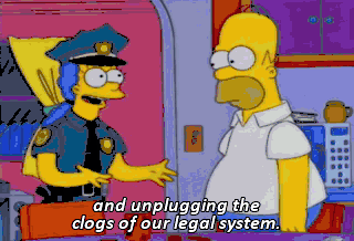 and unplugging the clogs of our legal system. You're cooking what for dinner? Everywhere I look someone is breaking the law. Dog, no leash. Man littering. Horse not wearing diaper.