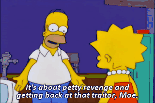 It's about petty revenge and getting back at that traitor, Moe.