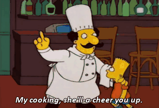 My cooking, she'll-a cheer you up. Hey, Salvatore, give-a the ugly kid a plate of the red crap!