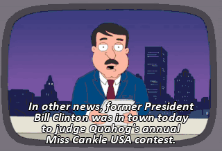 In other news, former President Bill Clinton was in town today to judge Quahog's annual Miss Cankle USA contest.